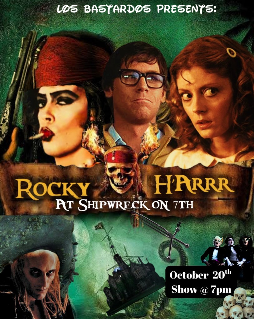 Get ready, landlubbers as we set sail on a strange journey! The special pirate-themed showing of The Rocky H’Arrr’rr Picture Show will start at 7pm on October 20th, so grab your pirate hat and get your tickets to do the Time W’Arrrp with us!