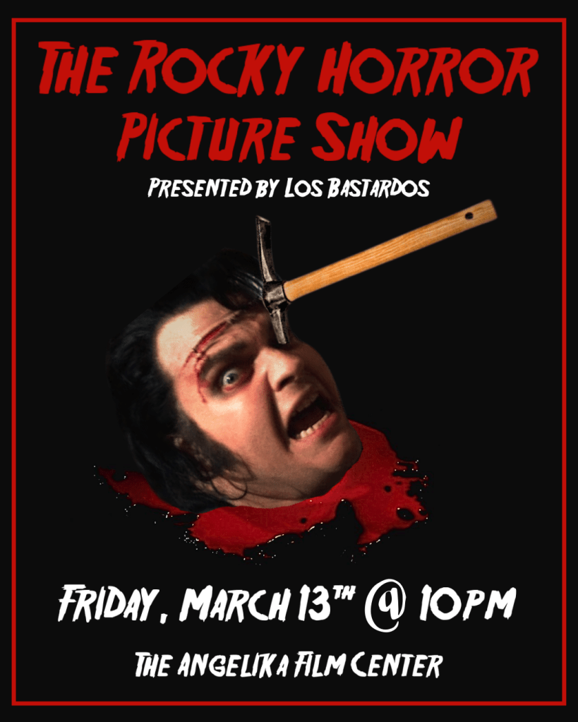 Join us at the Angelika Film Center in Dallas on Friday, March 13th for a scary good time as Los Bastardos presents The Rocky Horror Picture Show! Snag your tickets using the link and we’ll see you at 10pm for a killer show!